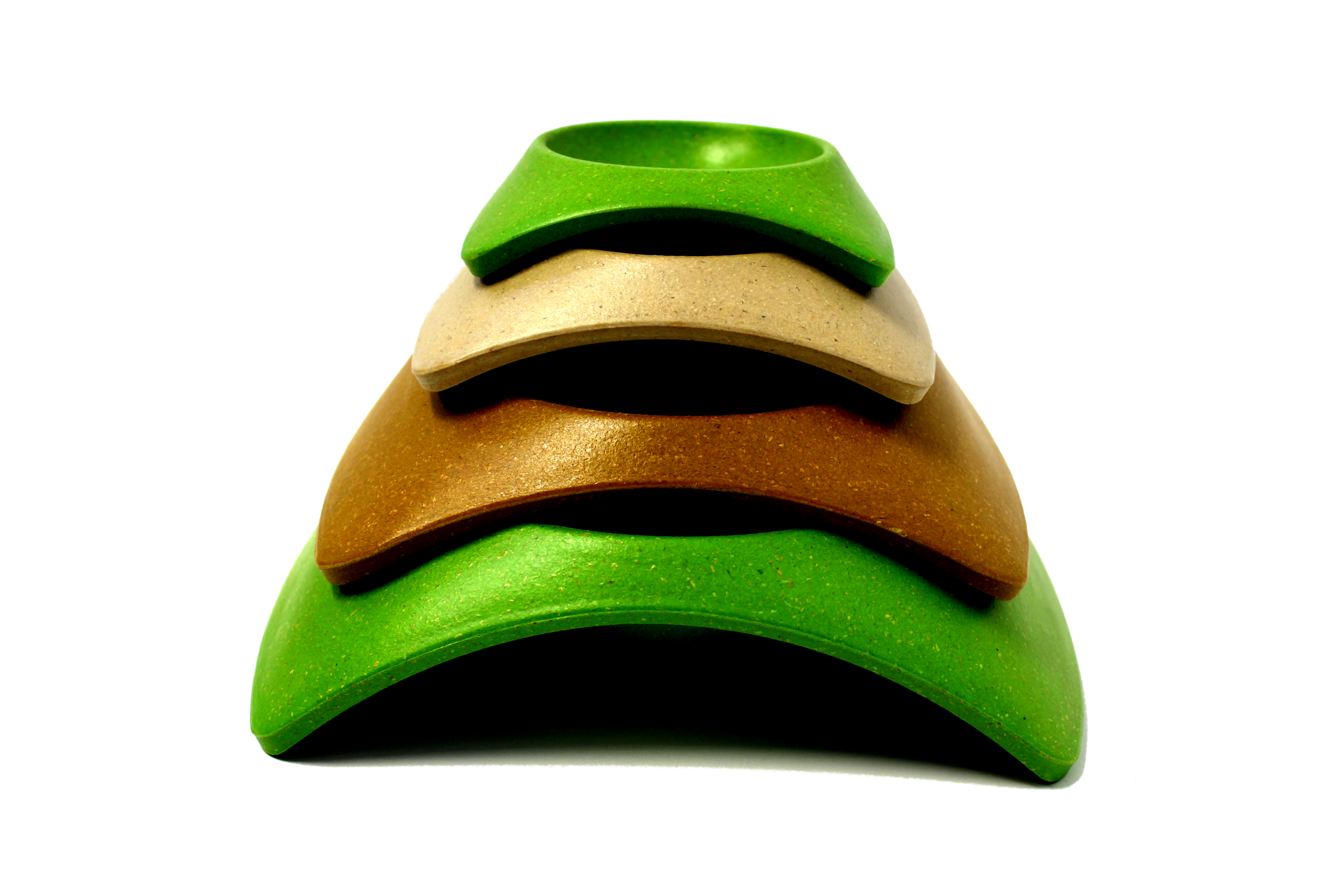 A clean, airy aesthetic was developed for the bowls to highlight the gentle ecological footprint of Eco Bowl’s product line. Arching ends provide convenient grip areas while “floating” the bowl off the floor.